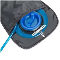 Internal 3L hydration bladder pocket with bladder hook, discreet tube routing port, and hose keeper clip on sternum strapÂ