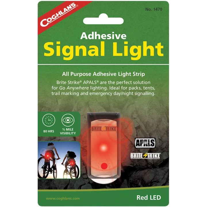 Coghlan’s Adhesive Signal Lights are the perfect solution for go anywhere lighting. Ideal for packs, tents, trail marking and emergency day/night signalling. Perfect for hunters, campers, and hikers who want a powerful and rugged light source that can replace bulky chemical lightsticks. Completely submersible and dustproof, the hermetically sealed signal lights are intended for use in the worst possible conditions, from the searing heat of the desert to the frigid waters of the harshest waters. With more than 80+ hours of run time, the disposable signal lights will meet the most stringent requirements. Can be seen up to 1/2 mile.