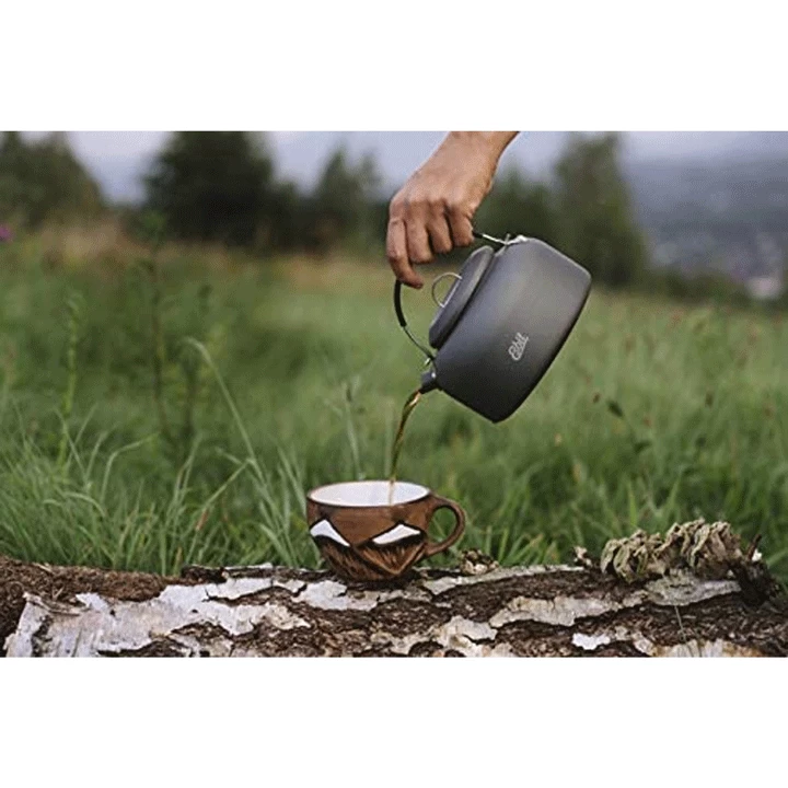 Boiling water – a basic need outdoors. This kettle made of extremely light, hard anodized aluminum is the ideal solution. It holds about 600 ml and has a practical folding handle. In combination with the stand, it is perfectly suitable for the Esbit cookset CS2350WN with alcohol burner. It can be stored in the Esbit cookset CS2350WN with alcohol burner.