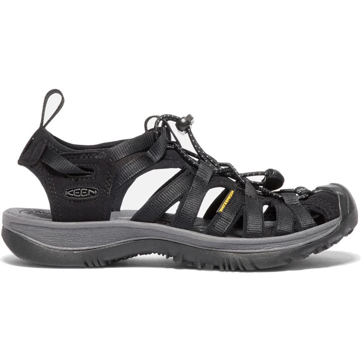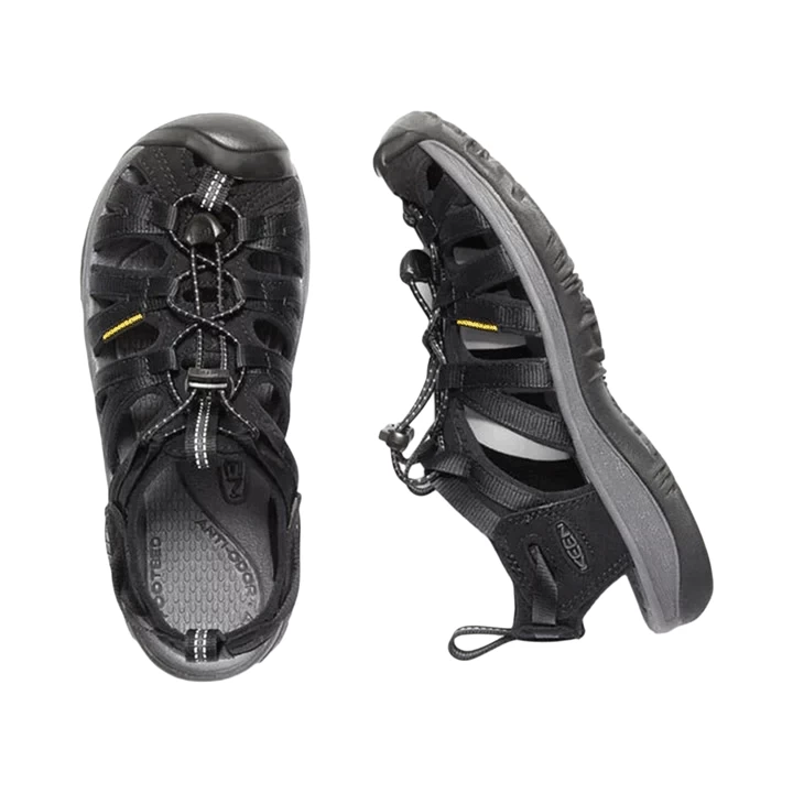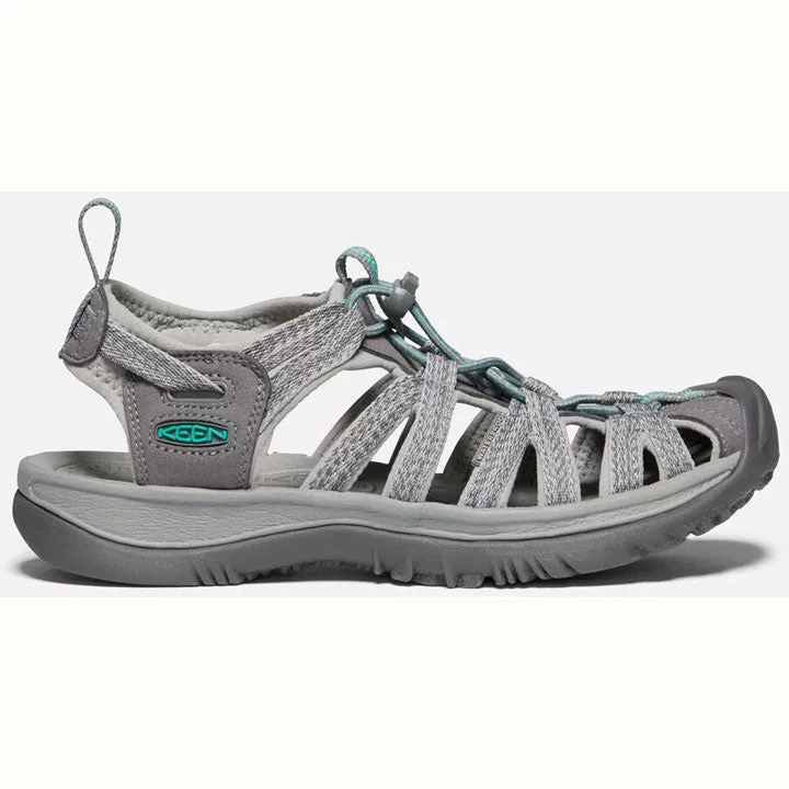 From hidden coves to rushing rivers, the Whisper sandal from KEEN can manage any water-filled day. The quick draw elastic cord lacing system adjusts to a comfortable and secure fit. The washable polyester upper features the odor-reducing Aegis Microbe Shield®. The foot-cushioning EVA molded footbed provides comfort on the go.