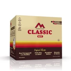 The Mountain House Classic Kit measures 9.875″ (L) x 8.875″ (W) x 8.875″ (H) and weighs 2.266 lbs. These original recipes are backed by our 30-Year Taste Guarantee and the longest, proven shelf life in the industry. Just add hot water and you’ll have a delicious meal in minutes. Turn on the old tube TV, grab a pouch, kick back and relax. Mountain House has you covered.