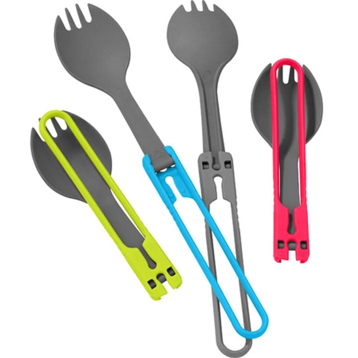 Updated with an improved pinch-to-fold locking mechanism, MSR® Folding Utensils are constructed with BPA-free materials and collapse to fit inside MSR Insulated mugs for efficient packing. Different color options coordinate with MSR’s Mugs and DeepDishâ„¢-ware so you can keep track of your own set.