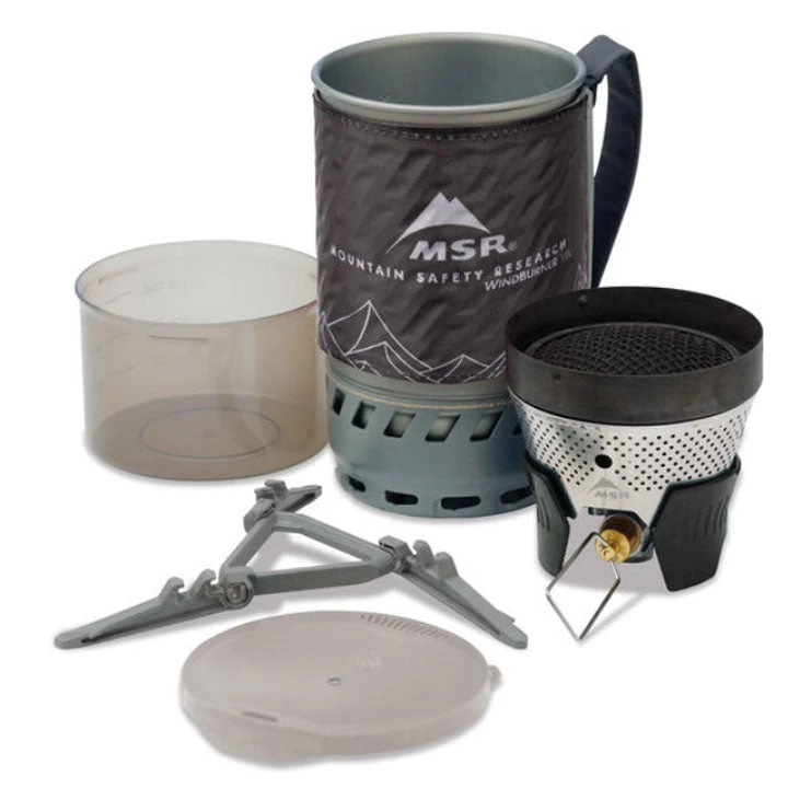 Enjoy fast meal prep on solo travels and minimalist trips with the MSR WindBurner stove system. This compact, all-in-one stove and cookware set includes a locking pot and eat-and-drink mug with cozy.