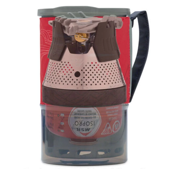 - Stove burner, your own 4 oz. IsoPro fuel canister and folding stand all fit inside the 1-liter pot; full-size bowl snaps onto the outside