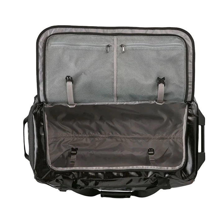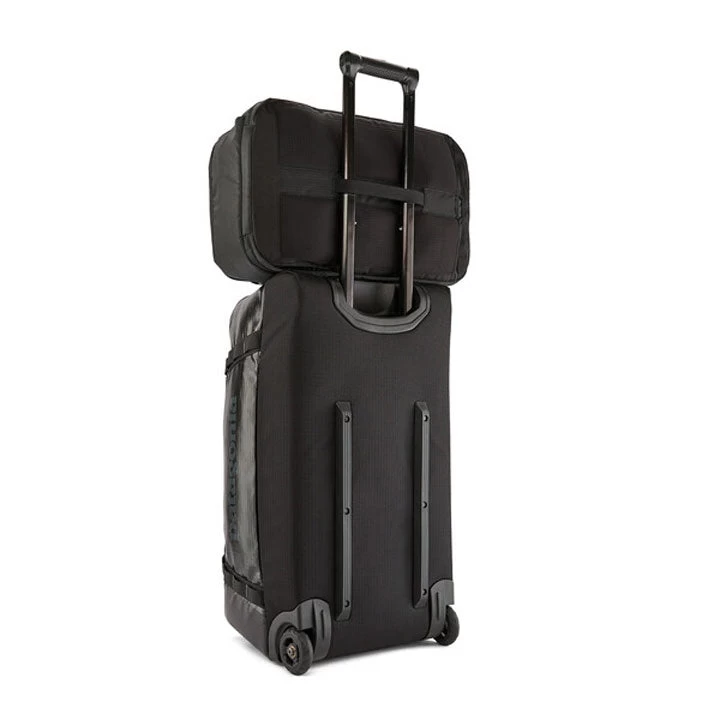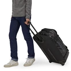 Patagonia’s midsize Black Hole® Wheeled Duffel 70L is perfect for gear-intensive weekends or multiweek travel. Made with 100% recycled body fabric, lining and webbing.