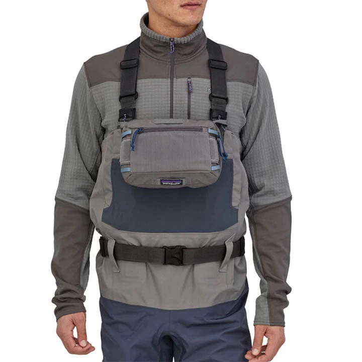 This low-bulk, water-resistant pack attaches to wader suspenders and keeps tools, flies and essentials front and center. Details include a large zippered main pocket, two zippered accessory pockets, a rear security pocket, fly patch and tool docking stations. Fair Trade Certifiedâ„¢ sewn.