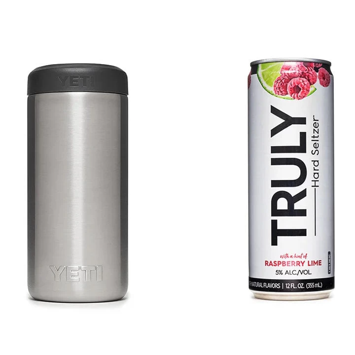 Our new 12 oz. slim design, ideal for keeping hard seltzers icy cold while hanging out on the hottest days. Double-wall vacuum insulation and No Sweatâ„¢ Design keep your hands dry, and the updated Load-and-Lockâ„¢ Gasket only requires an easy quarter-turn to secure your drink in place.